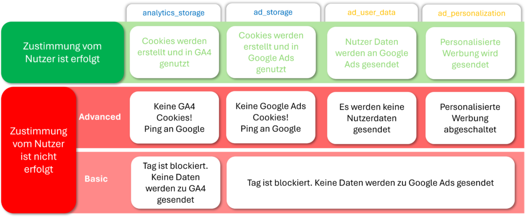 Unterschiede zwischen Basic und Advanced Consent Mode